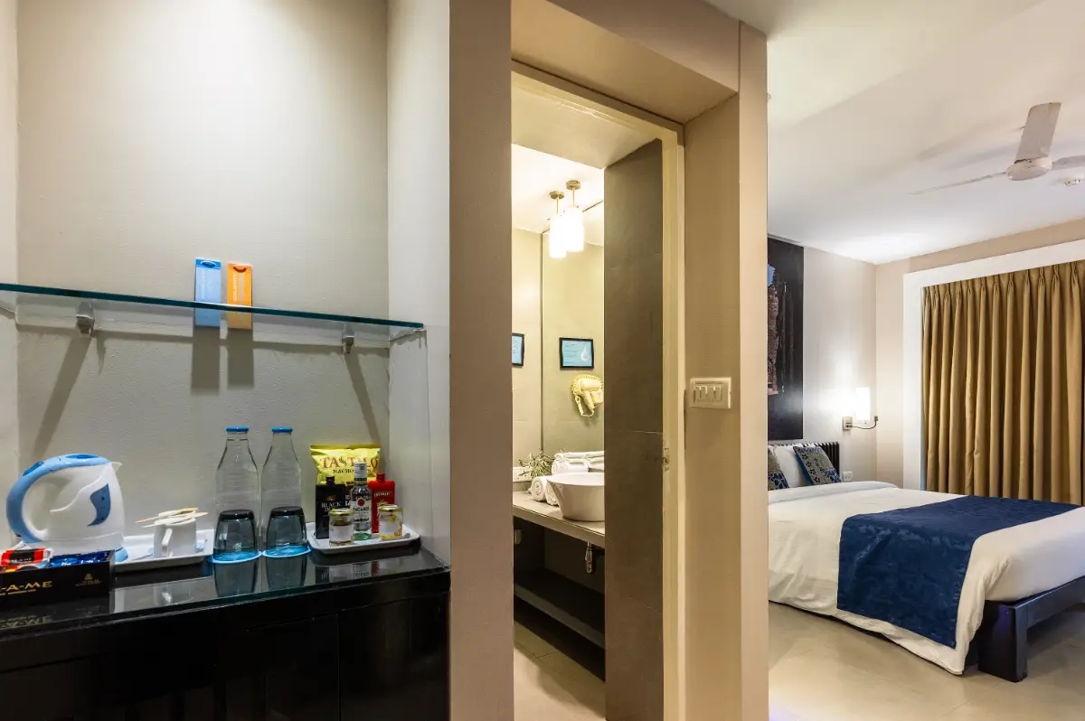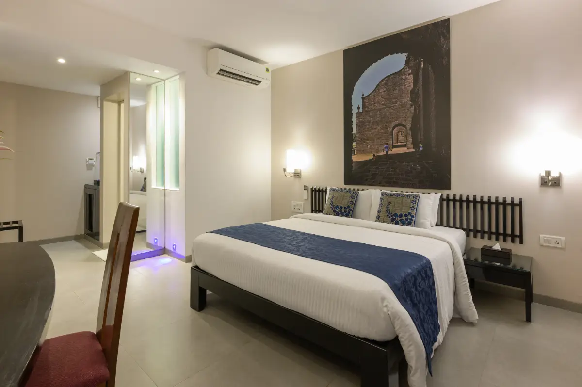 This room category boasts a large Queen bed according to your preference, and a private patio sit out where you can share meals or a cocktail under the evening sky. Its exclusive in-room amenities, hand-picked local decor and gorgeous layout make us one of the best villa hotels in Goa.